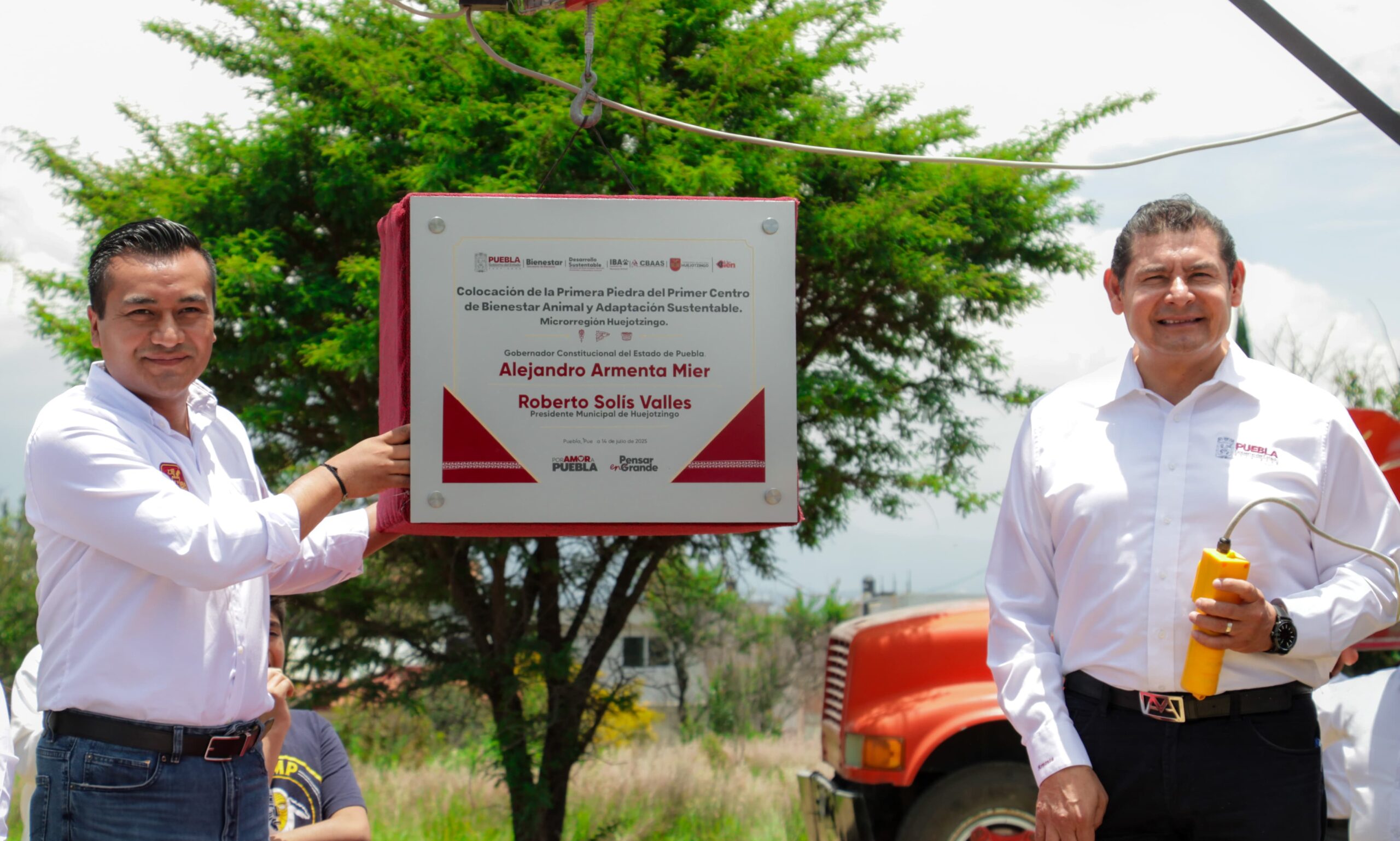ALEJANDRO ARMENTA Y ROBERTO SOLÍS COLOCAN LA PRIMERA PIEDRA DEL PRIMER CENTRO MICRORREGIONAL DE BIENESTAR ANIMAL EN HUEJOTZINGO