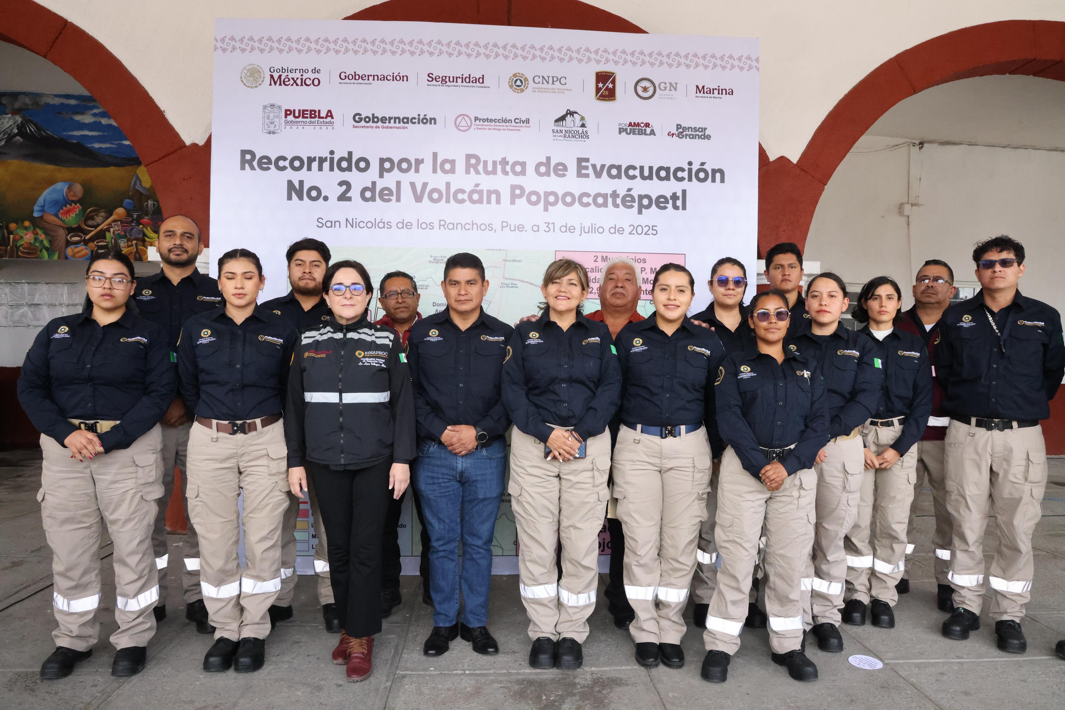 -La Coordinadora Nacional y el gobernador de Puebla, Alejandro Armenta recorrieron la Ruta 2 de Evacuación del Volcán Popocatépetl.