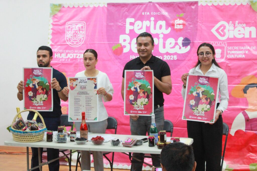 En rueda de prensa, el presidente municipal, Roberto Solís Valles, presentó la 6ta. edición de la Feria de las Berries, que se celebrará del 21 al 24 de agosto en la Colonia de San Diego Buenavista. Este evento busca promover la producción local de berries y consolidar a Huejotzingo como un destino turístico y cultural.