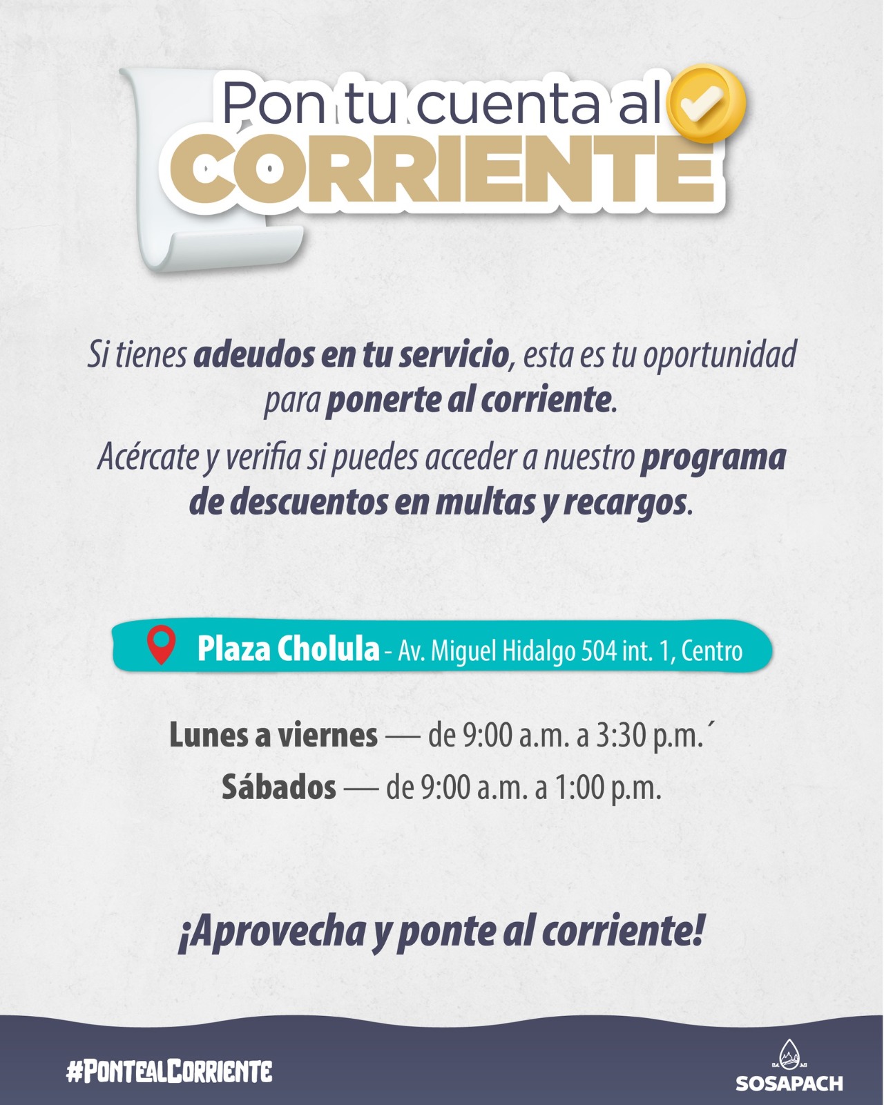 SOSAPACH invita a aprovechar el programa Pon tu cuenta al corriente