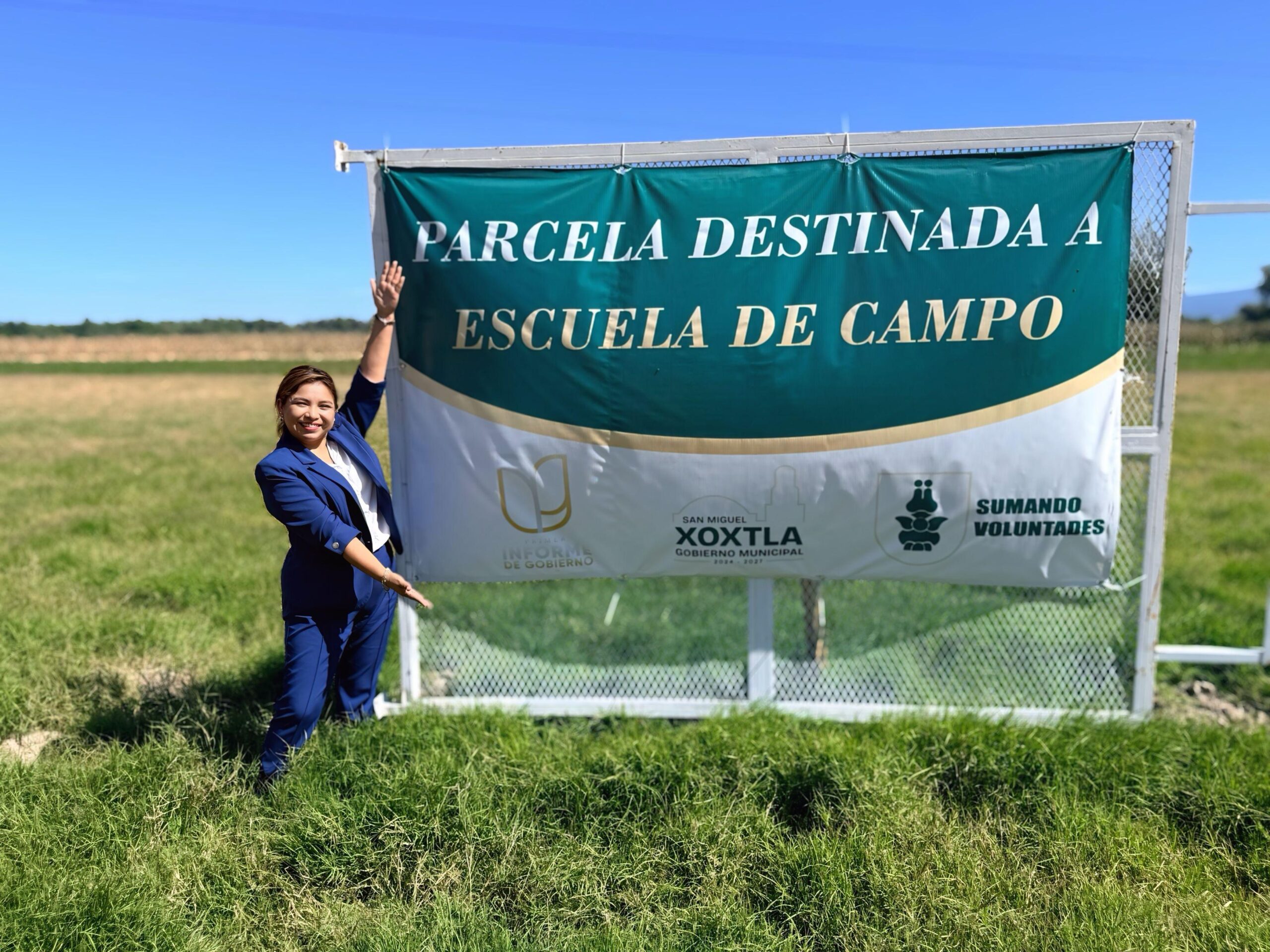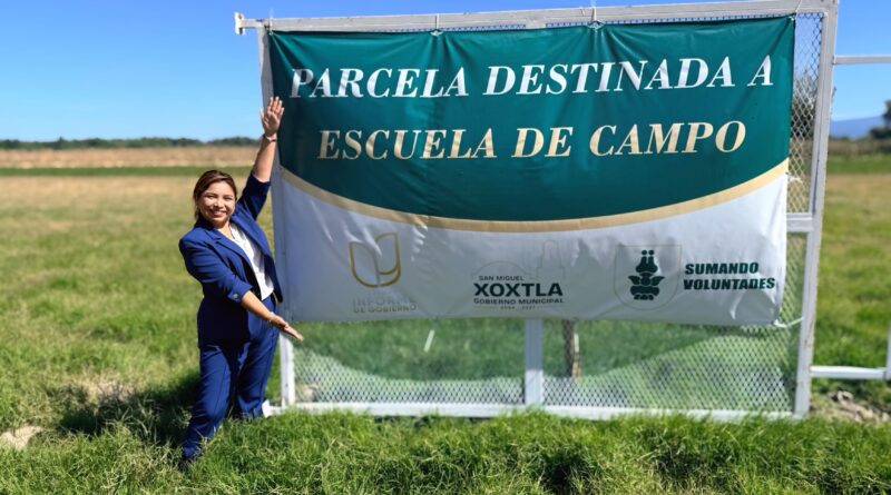 La alcaldesa Guadalupe Ortiz anuncia la “Escula de Campo” ubicado en la parcela “Las Lamas” en Xoxtla.