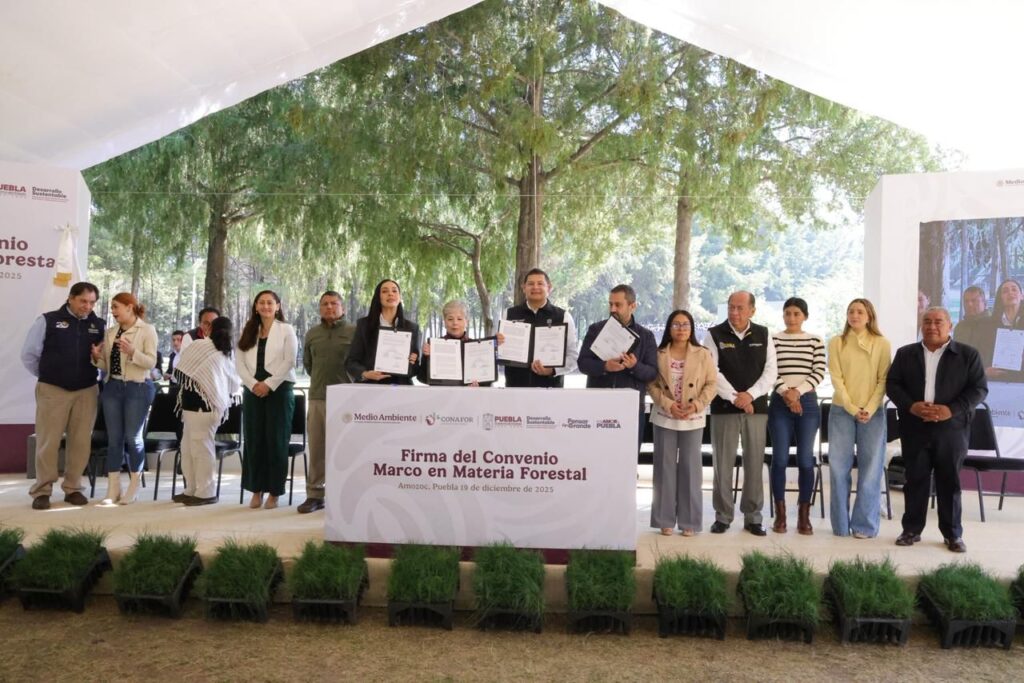 Amozoc de Mota, Puebla.- Por invitación de la Secretaría de Medio Ambiente y Recursos Naturales (SEMARNAT), el Presidente Municipal de Amozoc, Severiano de la Rosa Romero asistió a la Firma del Convenio Marco en Materia Forestal entre la SEMARNAT, la CONAFOR y el Gobierno del Estado de Puebla, realizada en el Parque Estatal Flor del Bosque, y encabezada por el Gobernador Alejandro Armenta y la Dra. Alicia Bárcena Ibarra, Secretaria de Medio Ambiente y Recursos Naturales.