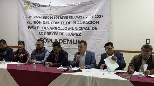 LOS REYES DE JUAREZ, PUEBLA.- El presidente municipal de Los Reyes de Juárez, Alfonso Vélez Merino , llevó a cabo la sesión del Comité para el Desarrollo Municipal (COPLADEMUN), donde participaron los presidentes auxiliares del municipio, con el objetivo de fortalecer la planeación y el desarrollo de todas las comunidades.