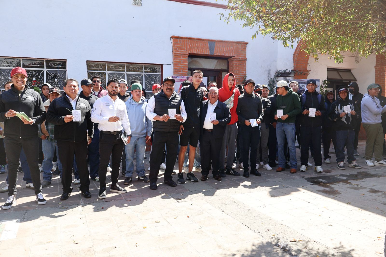 Posteriormente, en las instalaciones de Casa Colorada, el presidente municipal encabezó la entrega de 60 cartillas liberadas del Servicio Militar Nacional a conscriptos de la clase 2008 y remisos, quienes realizaron su trámite en tiempo y forma.