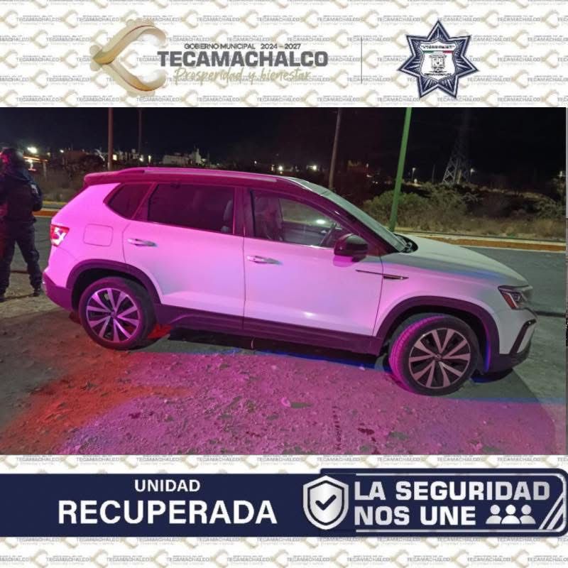 El vehículo, una VW Taos modelo 2024 con reporte de robo en Quecholac, fue asegurado y puesto a disposición del Ministerio Público.
