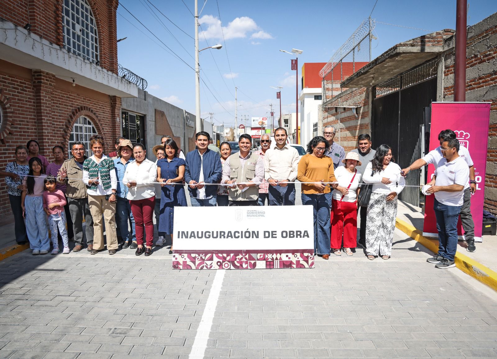 La obra fue ejecutada con una inversión de 2.5 millones de pesos, misma que incluyó la colocación de adoquín, construcción de banquetas, instalación de luminarias y nivelación de registros, lo que mejora significativamente la movilidad, la seguridad y la imagen urbana de la zona.