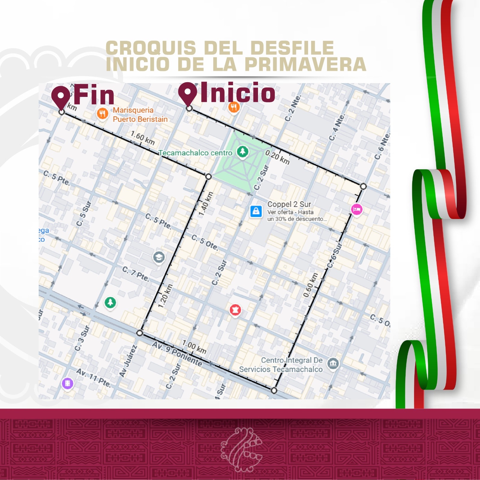 Para una mejor organización y seguridad de todas y todos, se comparte el croquis del recorrido, con el objetivo de que la ciudadanía tome sus precauciones, considere rutas alternas y evite contratiempos durante el desarrollo del evento.